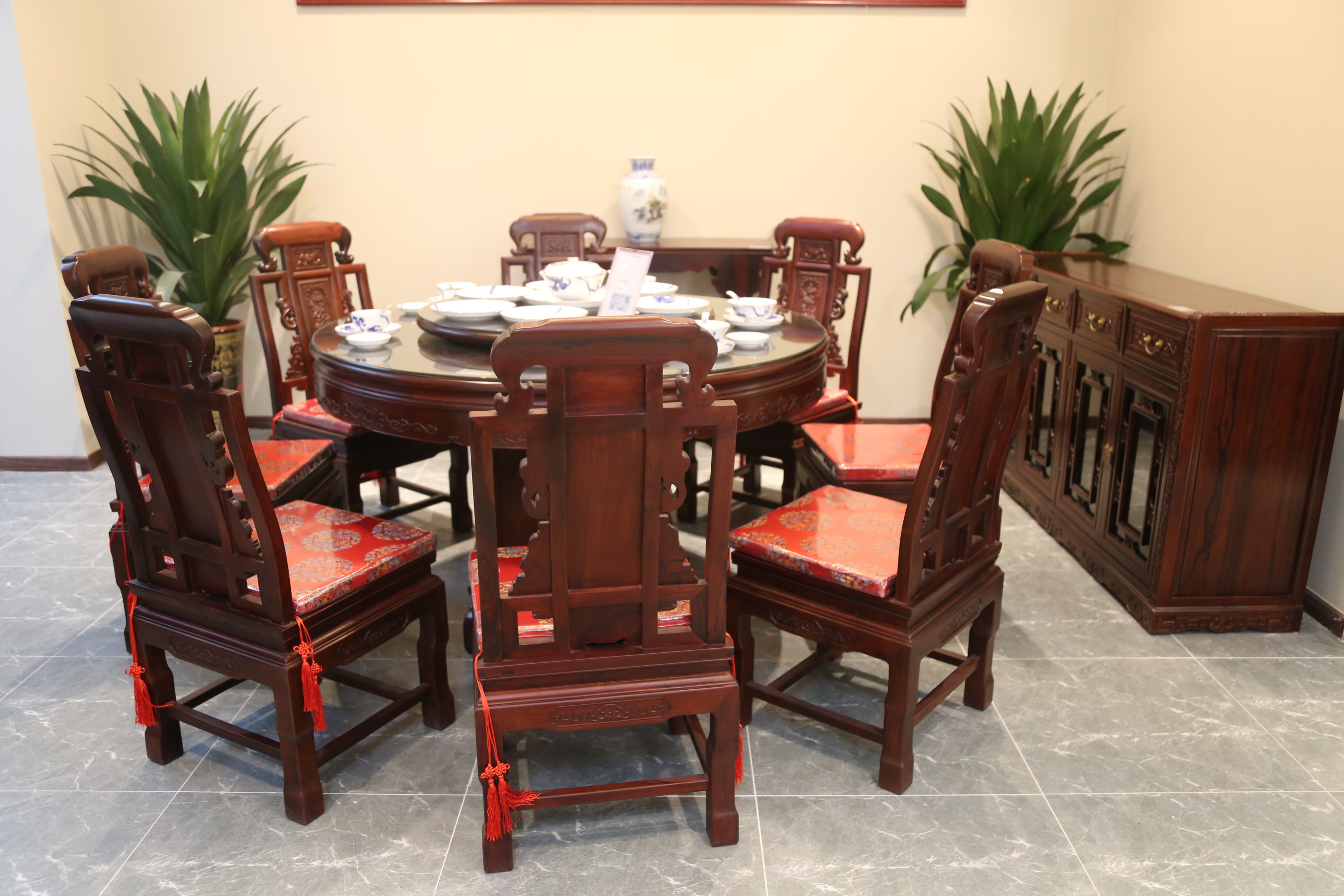 1.38米山水圓餐臺(tái)配8椅
